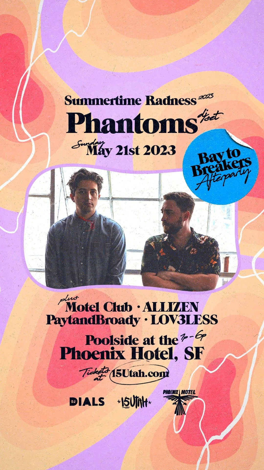 Phantoms, comprised of Los Angeles-based natives Kyle Kaplan and Vinnie Pergola, are a dance act that does exactly that. Often tough to box in... the boys' style lends itself to many elements of electronic and pop music; while still managing to always incorporate distinct synths and drum samples that have become synonymous with their "genre" of alternative electronic. Stemming from deep-seated roots in music and entertainment backgrounds, K&V put their entire beings into the project. They keep everyone continually dancing with an impressive live set of drum pads, synthesizers and midi controllers, while also keeping audiences engaged through their own style of humor on social media platforms. A full-time job for the band. Their fun and downright captivating personalities shine through all aspects of Phantoms.